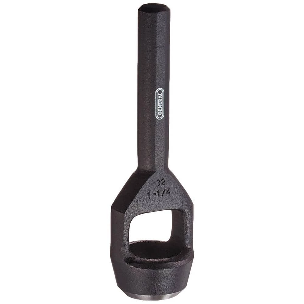 The General Tools 1-1/4 in. Hollow Punch is the ideal punch tool for punching a 1-1/4 in. hole in leather, rubber, canvas, plastic, sheet metal, gasket material, cardboard or other softer metals. The internal punch features an inside taper for clearance. The punches are heat treated forged steel, ensuring long lasting performance. Because of this heat treatment, the cutting edge will stay sharper longer.