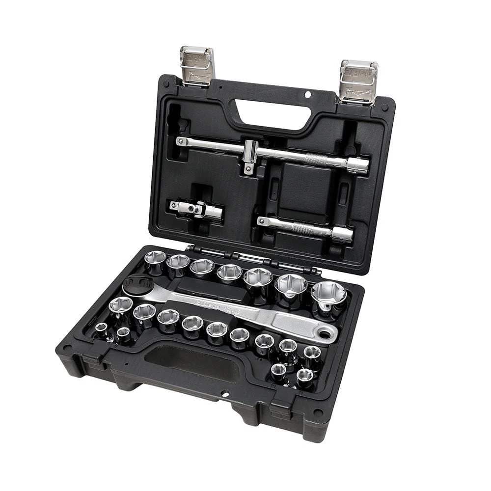 The Beta Easy 923E/C25 is a 1/2 in. socket set consisting of 25-pieces. The set is an assortment of 20 hexagon sockets and 5 accessories. The tools are packaged in a durable black plastic case for easy storage.