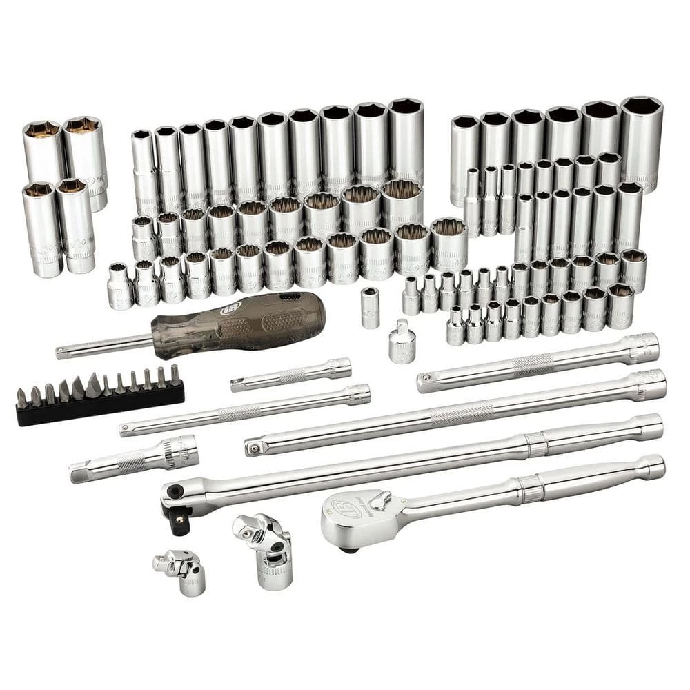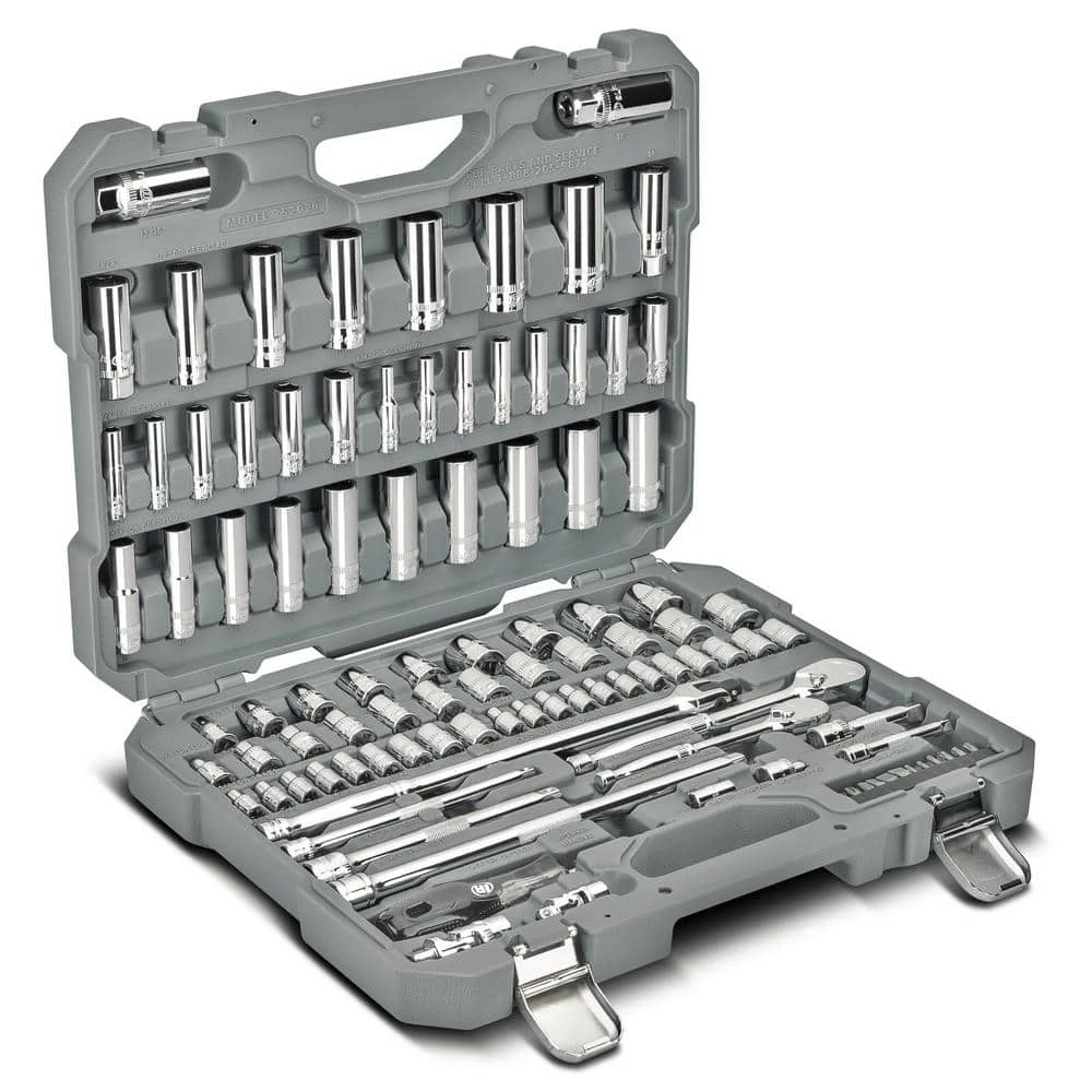 - COMPREHENSIVE SET: Includes 76 Sockets, 2 Each 72 Tooth Ratchets, 23 Tools and Accessories.