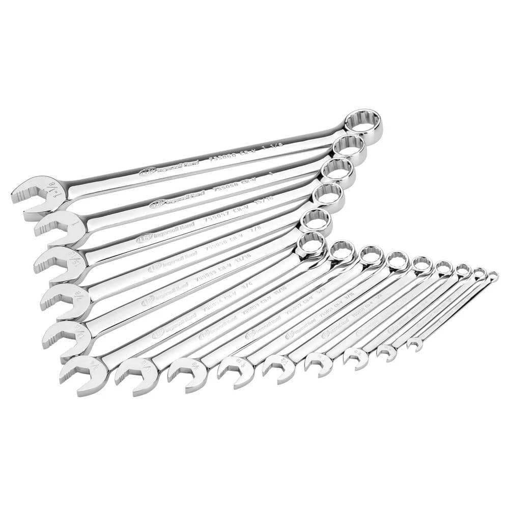 - CONTAINS: Non-Slip SAE Combination Wrenches in sizes 1/4, 5/16, 3/8, 7/16, 1/2, 9/16, 5/8, 11/16, 3/4, 13/16, 7/8, 15/16, 1, 1-1/8 Inches