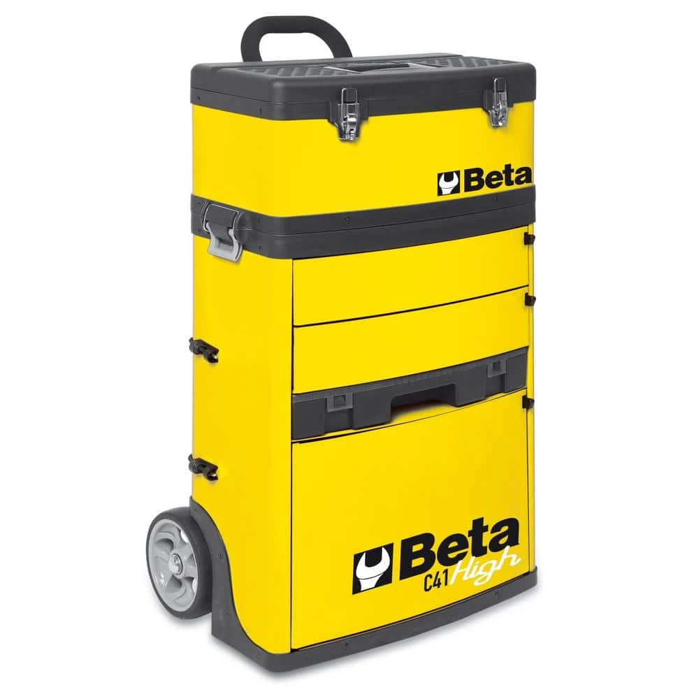 Main features: Sheet metal frame and plastic tops, synonymous with remarkable sturdiness and reduced weight. 2 detachable modules: 1 upper tool box, 1 module with 2-drawers 3.74 in. H, 1 pull-out case made of plastic, 2.60 in. mm H and 1-drawer 11.61 in. H. Oversized castors ( 6.30 in.), built into frame for easy transport for example, on steps. Side centralized lock for closing drawers of lower module. Drawers with ball bearing slides and double closing hook. Telescopic aluminum handle. Small tool holder built into upper tool box. Lower drawer with double ball-bearing slide.