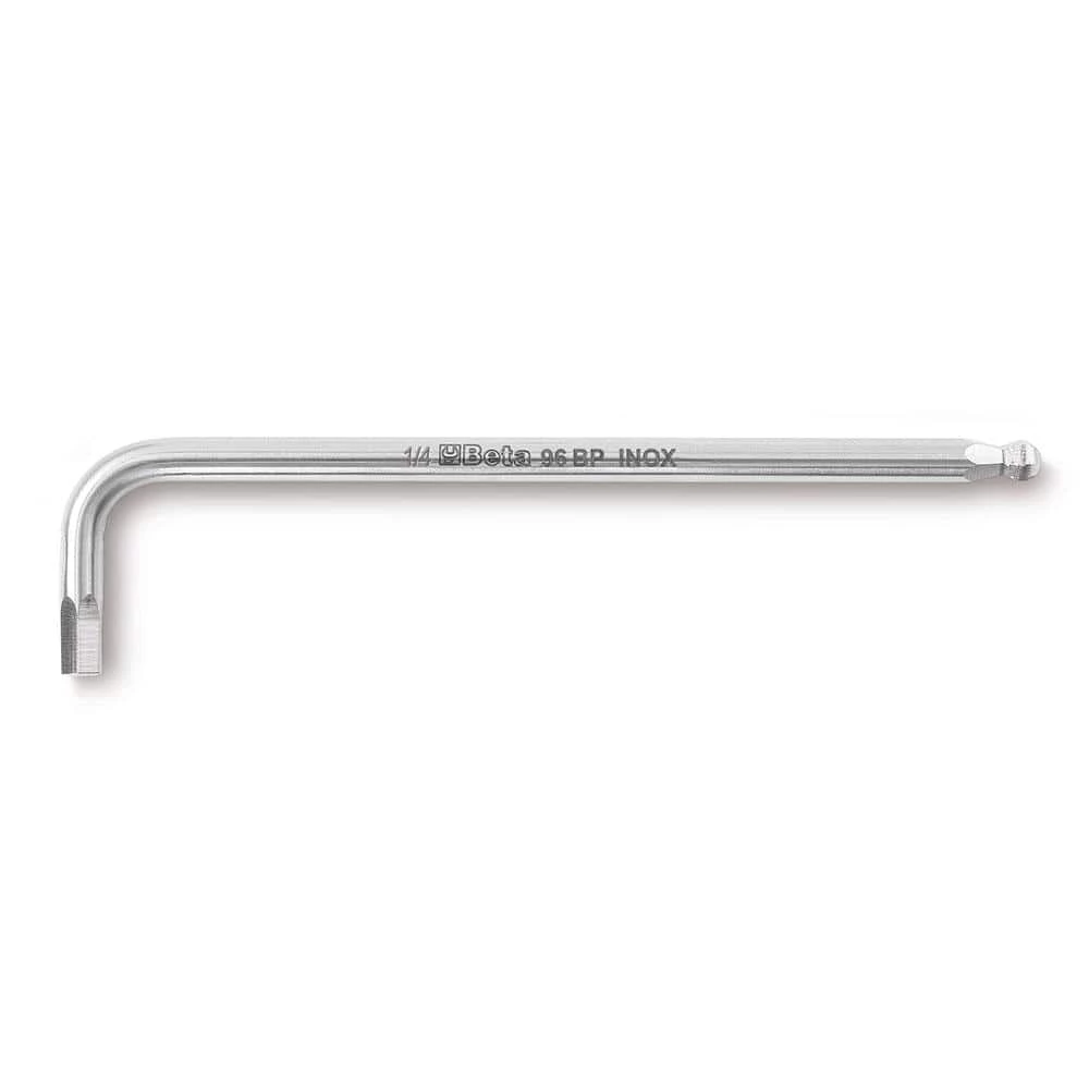 The Beta 96BPINOX-AS is a stainless steel ball head offset hexagon key wrench. The wrench has a high resistance to corrosion because it is made of AISI 420 stainless steel. Beta INOX tools can be used in critical environments such as the food industry, pharmaceutical, Nuclear and offshore applications.