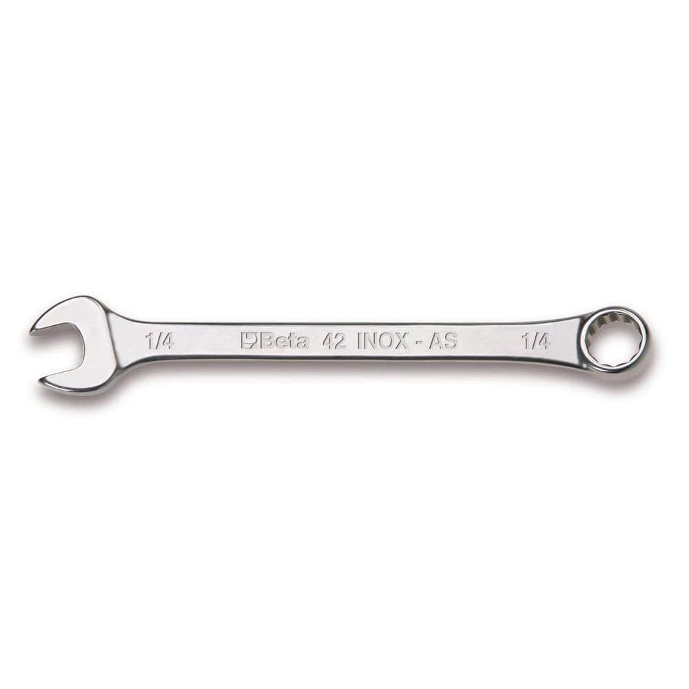 The Beta Tools 42INOX combination wrench is made from AISI 420 stainless steel. This form of stainless steel is an alloy steel with a high chrome content. The chrome helps to create a surface oxide film which protects the metal and immediately forms in case of chemical or mechanical damage. Beta has relied on this unique peculiarity to develop the Beta INOX range of tools, which provide high resistance to corrosion and can be subjected to sterilization.
