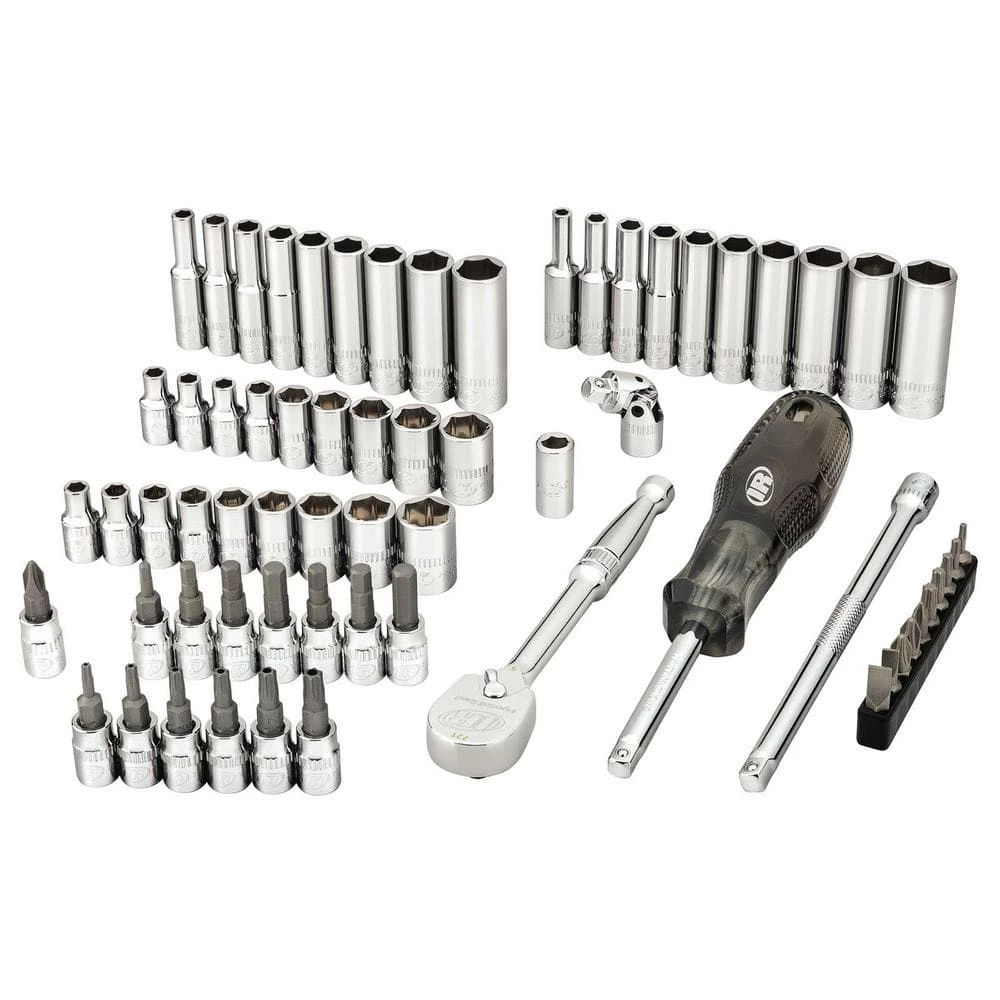 - COMPREHENSIVE SET: Includes 1/4-inch Drive: 51 SAE and Metric Sockets, 72 Tooth Ratchet and 14 Tools and Accessories