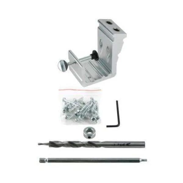 Easily make accurate pocket holes in small stock wood with the Aluminum Pocket Hole Jig Kit from General Tools. The hardened steel drill bushings are perfectly angled to guide the bit into workpieces, creating concealed channels for pocket-hole screws to spin into. A clamp allows you to move this handy device from 1 drilling position to the next or it can be mounted to a bench for stationary use.