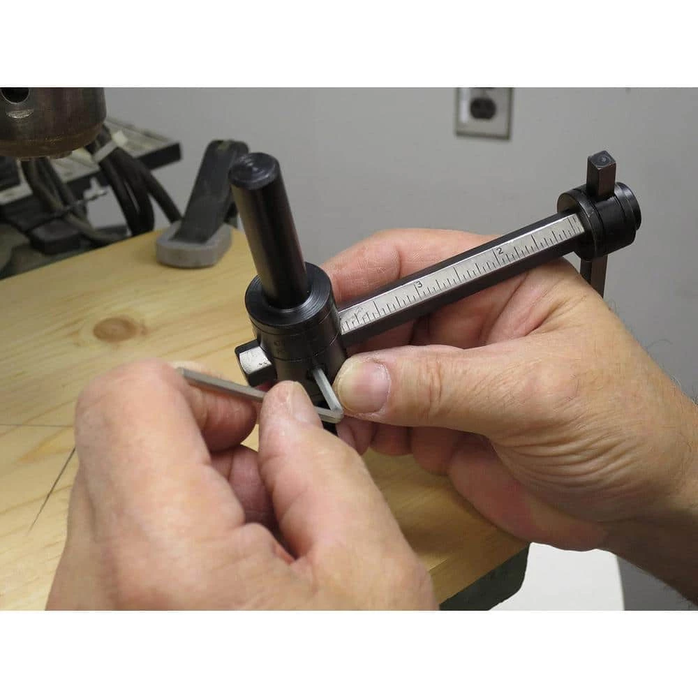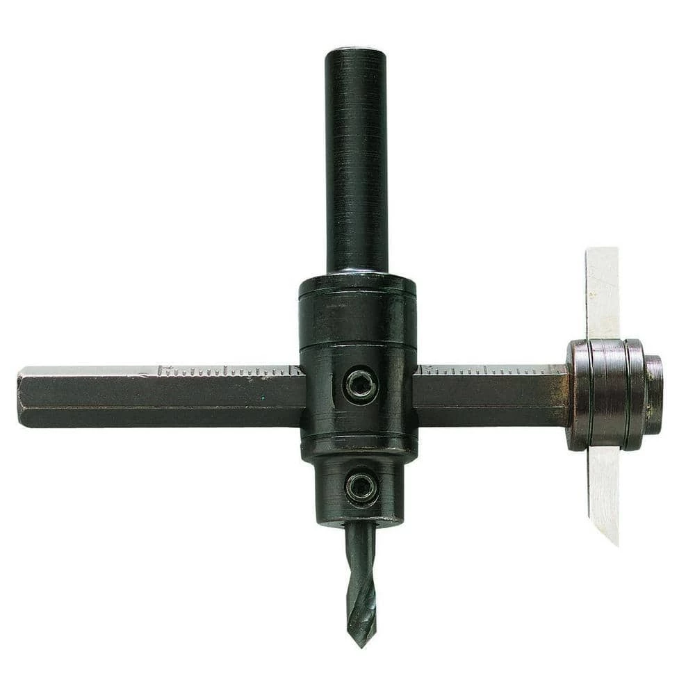 Designed for professional use, the Heavy-Duty Circle Cutter will make clean cuts from 1-3/4 in. Dia to 7-7/8 in. Dia. The tempered steel body features marked graduations on the beam for fast measurement and application. #55 Heavy Duty Circle cutter is designed with a 1/2 in. shank for drill press use only; Maximum safe speed is 500 RPM. This round shank circle cutter is great for making smooth cuts through most materials, including wood, composite, sheet metal and more; All adjustments are made with the included hex wrench. Replacement blades available.
