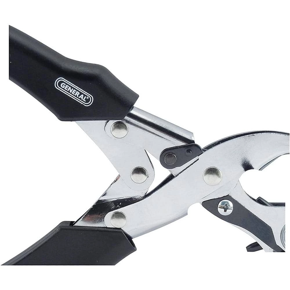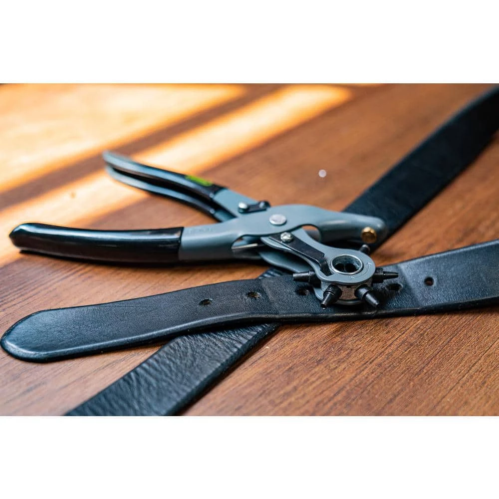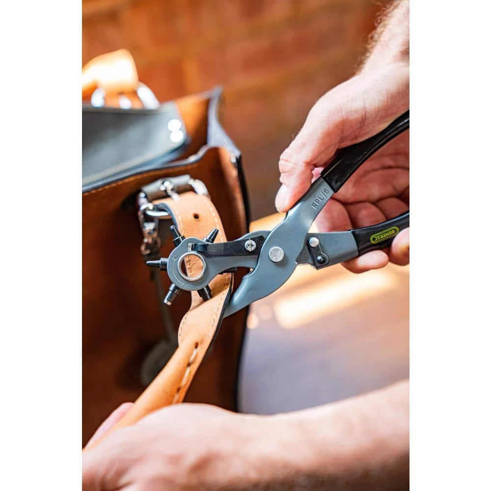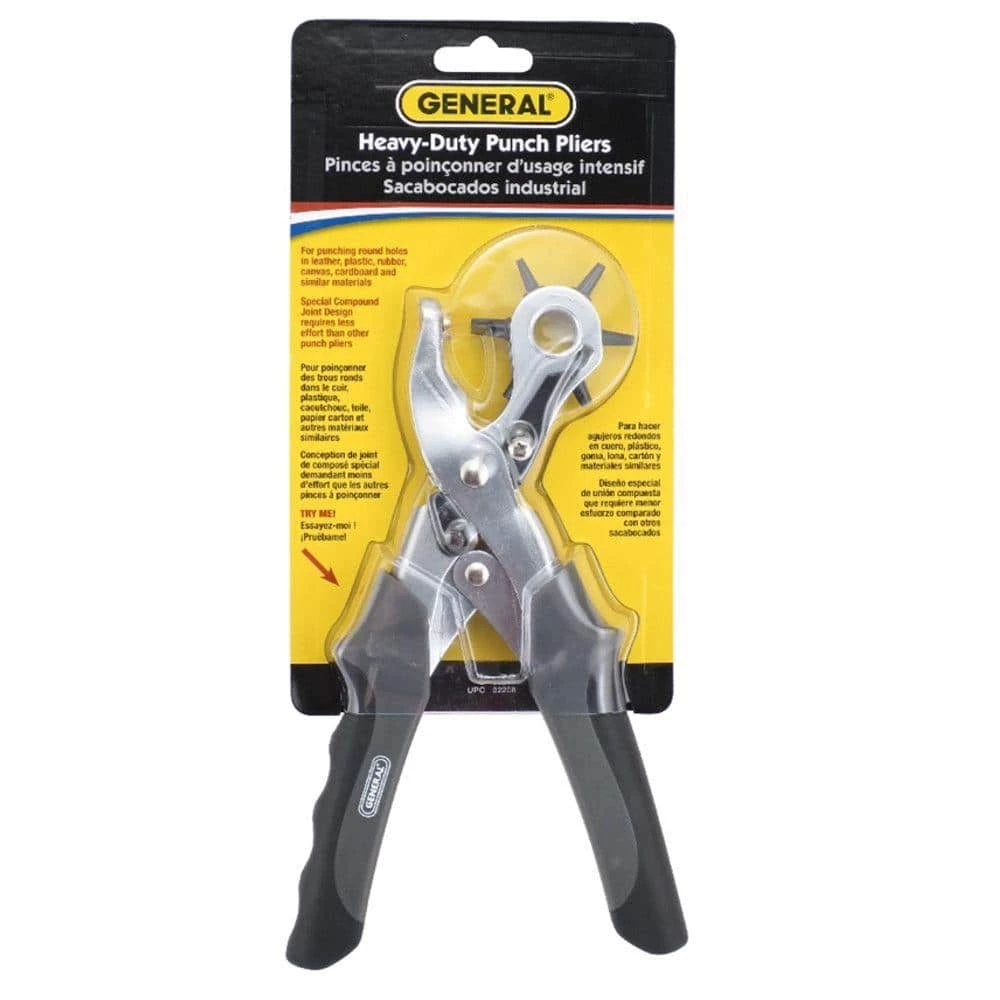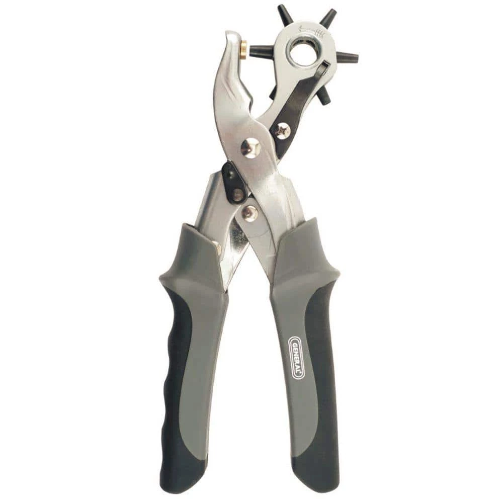 The General Tools Revolving Punch Pliers has a steel plated design, created with six tapered and hollow steel punches, for stronger durability. The revolving head utilizes 6 different punch sizes, ensuring a wide variety of options for the user. Excellent choice for hobbyists, amateur DIY and professional leather workers. With the new Heavy Duty Revolving Punch Pliers by General, discover an easier way to punch through your leather working projects.
