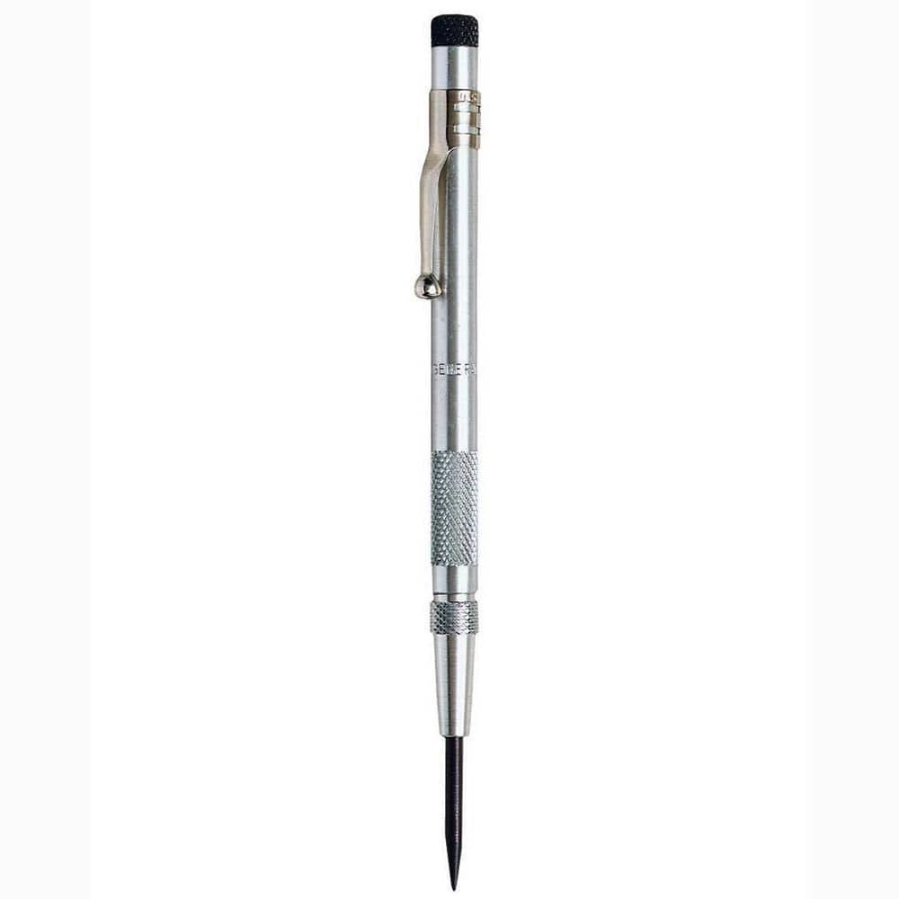 Use the General Tools 87 Pocket Automatic Center Punch to precisely punch material for drilling and layout work. This tool can be used with one hand and its spring impact operation delivers a punch that eliminates the need for a hammer. This pocket punch is also designed for marking, scribing and starting nail or screw holes. It works on metal, plastic, wood and other materials and is adjustable for light or heavy markings. The General Tools Pocket Automatic Center Punch has a lightweight aluminum body with a replaceable alloy steel point.