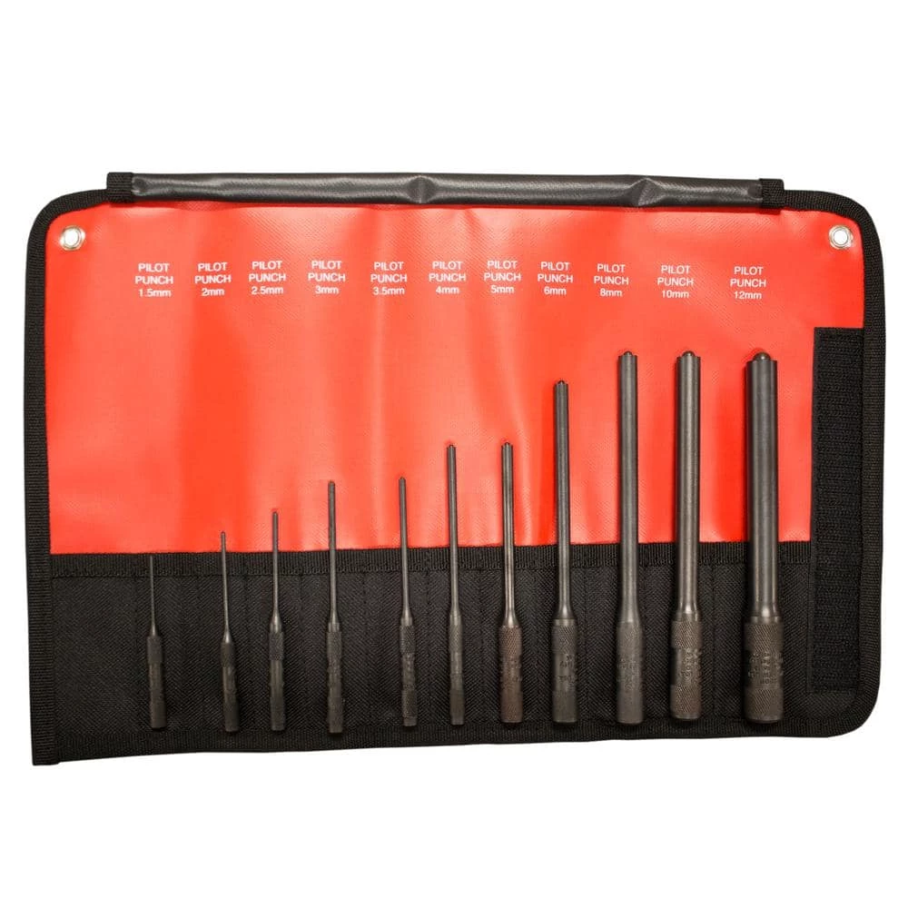 Also known as roll pin punches, Mayhew pilot punches are designed to drive in and remove roll pins or other hollow tension pins. The ball on the center of the point end assures proper contact with the pin eliminating damage to the pin or hole wall. This set Combines our most popular sizes to fit most applications.