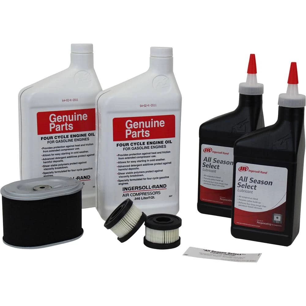 - Kit provides enough Ingersoll Rand all season select synthetic lubricant and air filter elements for 2-years of operation